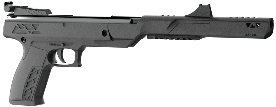 Pellet firing pistol. Powered with the same Nitro Piston technology found in the Trail rifles. Includes a rifled steel barrel, tactical synthetic frame, fibre optic front sight and adjustable rear sight. Includes a cocking aid to enhance the appearance and making it easy to hold to load the next round.