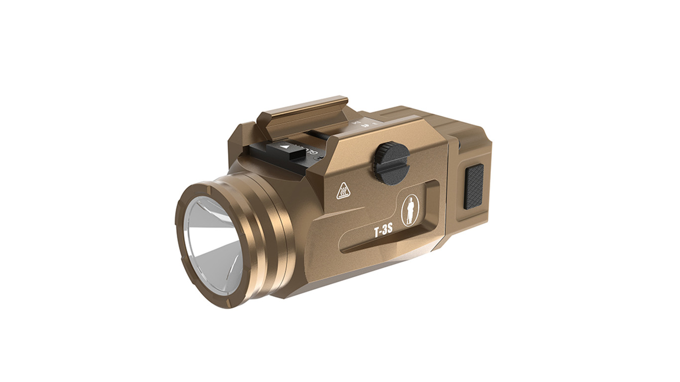 The Bisley T3 Mini Tactical Flashlight delivers 500 lumens to 113 m with a focused beam and spill. Weighing 64 g, it’s IPX5 water-resistant and drop-tested to 1 m. Features include five rail keys for mounting, strobe mode, safe-off lock and 1.5-hour runtime from a 750mAh rechargeable CR123A battery cell.