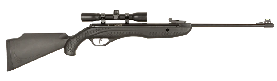 Powerful rifle with an innovative body style. Sleek synthetic stock. Features checkered grip & forend, rifled steel barrel, micro adjustable fibre optic sight & two-stage adjustable trigger. Comes complete with Centre-Point 4×32 scope.