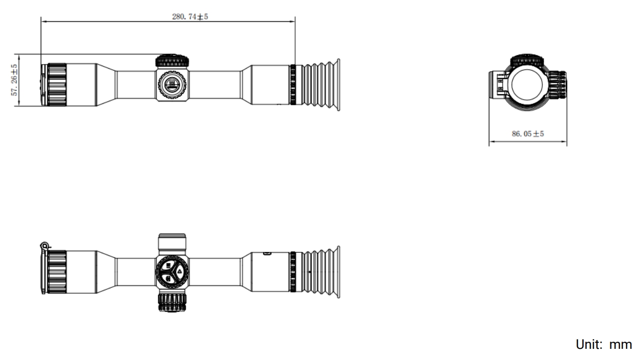 | Dimensions | 280.7 mm × 86.1 mm × 57.3 mm (without eyepiece) |
