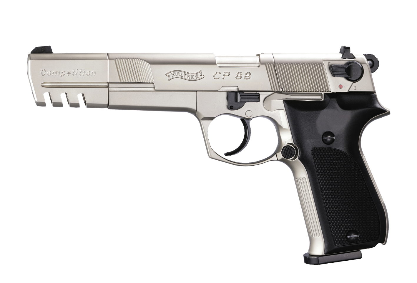 The Walther CP88, a high-quality, genuine full-metal replica of the Walther P88, is a true piece of history. It was the first pellet-shooting CO₂ pistol in the Umarex product range – a milestone for the company. In precision, performance and reliability it set standards for the current generation of airguns. Made in Germany, it continues to inspire both sport shooters and recreational shooters.